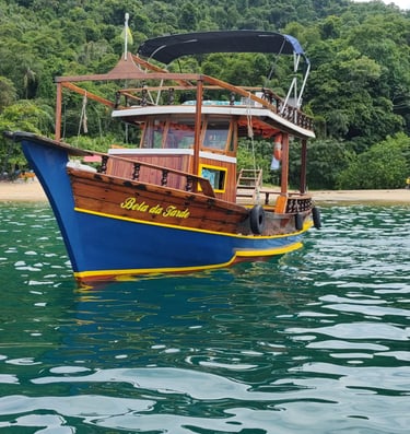 Experimente um dia inesquecível a bordo do Barco Bela da Tarde, comandado pelo mestre Otávio. Esta embarcação é perfeita para grupos de até 18 pessoas, garantindo conforto e diversão para todos. O barco conta com toaletes, um cooler repleto de bebidas, espaguete e um sistema de som via Bluetooth para animar sua viagem. Durante 5 horas de passeios, você poderá desfrutar de 3 a 4 paradas, incluindo uma parada final em um restaurante aconchegante. Sugerimos um roteiro incrível que inclui a Ilha da Pescaria e as belas praias Vermelha e da Lula, onde você poderá relaxar e mergulhar com a máscara disponível a bordo. Venha viver momentos de lazer e descontração em meio à natureza!