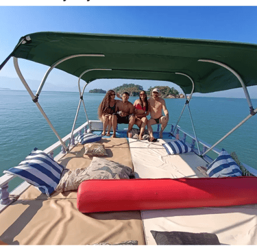 Descubra a beleza de Paraty a bordo do confortável barco Paraíso, que acomoda até 16 pessoas. Sob a habilidosa orientação do mestre Danilo, você poderá personalizar seu roteiro e disfrutar de 5 horas de passeio com paradas em locais deslumbrantes. As sugestões incluem a encantadora Lagoa Azul, a Praia da Lula e a Ilha da Pescaria, entre outras. O barco está equipado com culler, máscaras de mergulho, churrasqueira e som Bluetooth, garantindo momentos de lazer e diversão. Prepare-se para explorar as maravilhas naturais da região, mergulhar em águas cristalinas e saborear deliciosos pratos enquanto desfruta de um dia inesquecível em companhia de amigos e familiares. As opções de paradas, como a Ilha do Malvão, Ilha da Sapeca e Ilha Cumprida, prometem uma experiência única e memorável. Venha viver esta aventura!