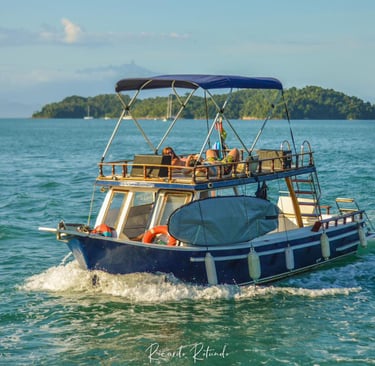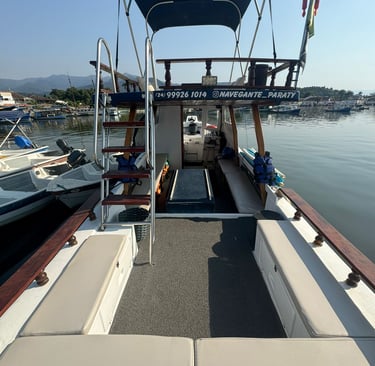 Desfrute de um passeio privativo com o mestre Ricardo, ideal para até 15 pessoas. Com duração de até 5 horas, você terá a oportunidade de fazer até 4 paradas para mergulho 🤿, explorando duas belas praias e duas ilhas deslumbrantes. O nosso roteiro sugerido inclui a encantadora praia da Lula 🦑, o aquário natural na ilha da Pescaria 🐟🐠, a Praia Vermelha, que oferece a opção de um delicioso almoço 🍽️, e a mágica ilha do Mantimento 🏝️🏰. A bordo, você encontrará gelo para bebidas de cortesia e uma caixa térmica disponível para uso. Também disponibilizamos som via Bluetooth, máscaras para mergulho e espaguetes flutuadores 🛟. O horário de saída é flexível, permitindo que você escolha o melhor momento para começar essa incrível aventura!