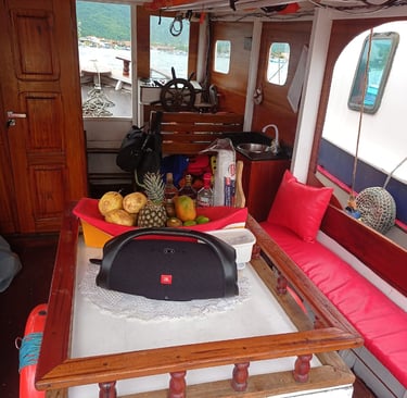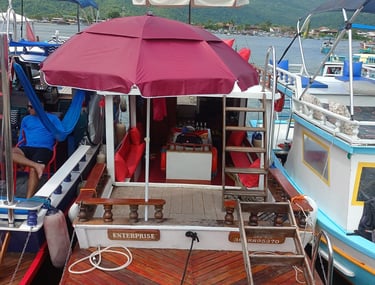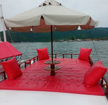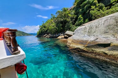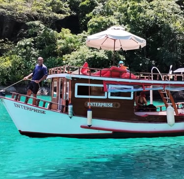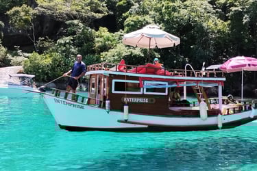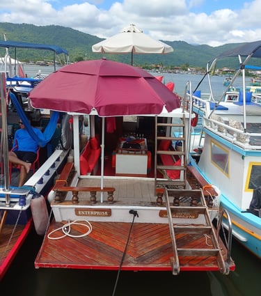 Nossos pacotes de passeio oferecem uma experiência única de 5 horas totalmente privativa, permitindo que você explore as deslumbrantes ilhas e praias da baía de Paraty Rj. A embarcação é equipada com todas as comodidades para garantir seu conforto e diversão. Contamos com banheiro, churrasqueira e coletes salva-vidas, além de alguns flutuantes para você relaxar na água. A bordo, a atmosfera é animada com som ambiente, e no segundo andar, você encontrará uma mesinha com guarda-sol, perfeita para desfrutar de um lanche ou bebida enquanto aprecia a vista deslumbrante. Venha viver momentos inesquecíveis em meio à natureza!