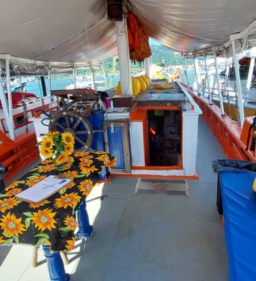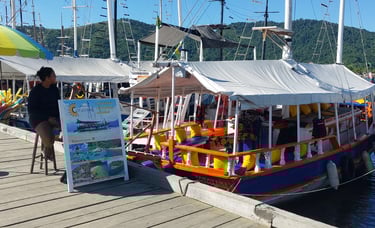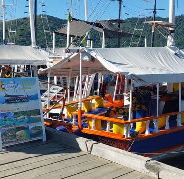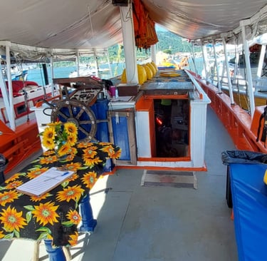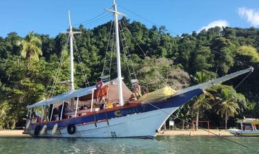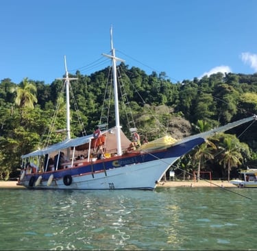 Nosso roteiro é a opção ideal para quem busca um roteiro especial e diferenciado do tradicional, pois o passeio lhe proporcionará um visual diferente da baía de paraty. A embarcação possui todo serviço e infraestrutura para tornar seu passeio agradável, confortável e seguro.