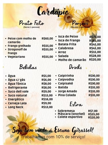 •Serviço de bar e restaurante a bordo, sendo possível ao longo do passeio desfrutar de deliciosos drinks de cachaça da terra, cerveja gelada, porções e refeições feitas na hora.