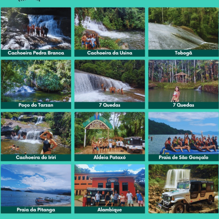 Explore a beleza natural de Paraty em um emocionante passeio de jeep de 5 horas, que começa às 10h30 e retorna às 16h. Durante a aventura, você terá a oportunidade de nadar no Poço do Tarzan e na Cachoeira Pedra Branca, além de se divertir na Cachoeira do Tobogã e relaxar no Poço da Usina. O tour também inclui uma visita à Casa de Farinha, onde você poderá conhecer mais sobre a produção local. Para os amantes de bebidas, uma parada no Alambique Paratiana oferece degustação de cachaça e licores, seguidos de uma visita à Queijaria Santa Lolla, famosa por seus queijos artesanais. Com um motorista guia local, toda a experiência é segura e informativa, e haverá uma pausa para um delicioso almoço. Venha viver essa experiência incrível em meio à natureza!